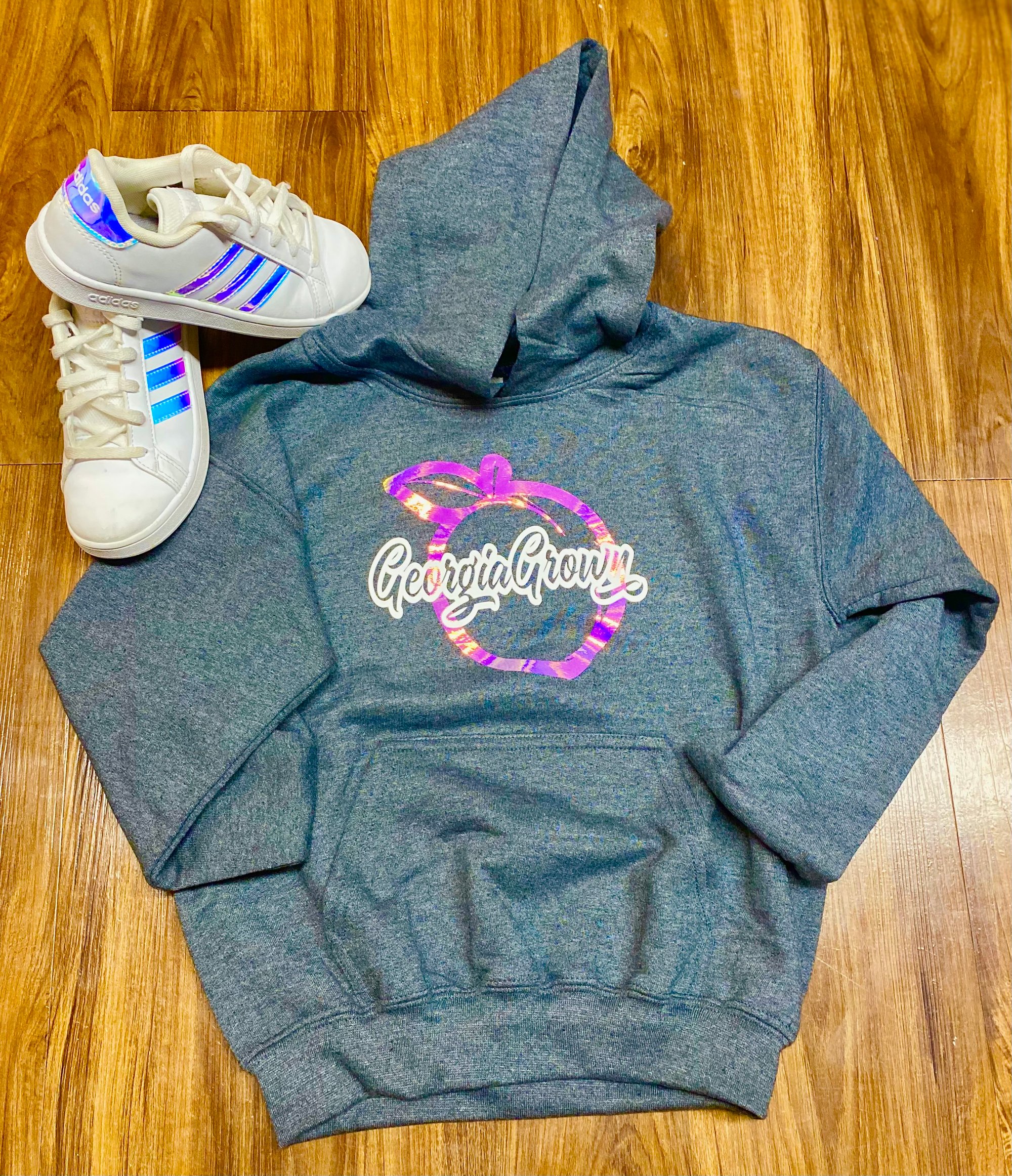 Trendy Hoodie with centered fun Georgia Grown Logo. Available in other colors!